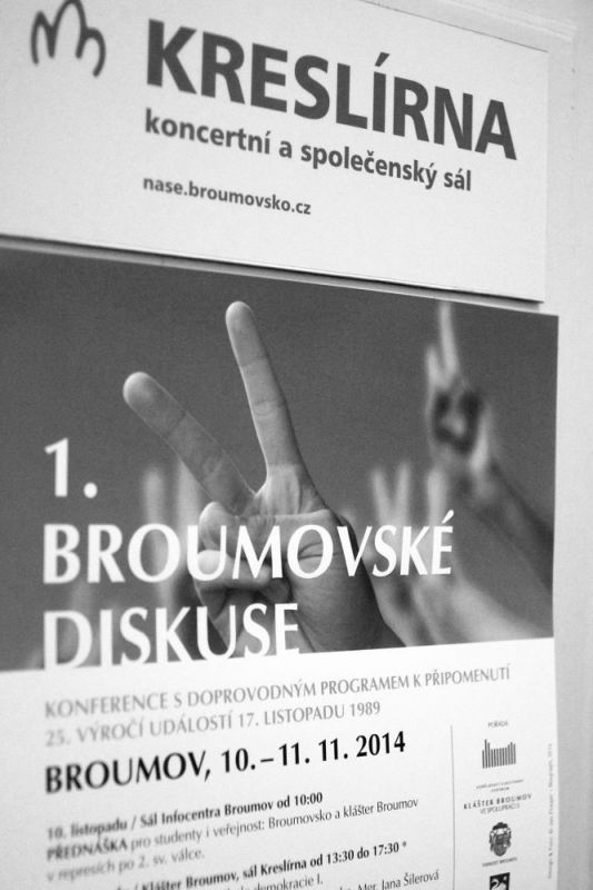 První ročník Broumovských diskusí se uskutečnil ve dnech 10. - 11. listopadu 2014 v Kreslírně broumovského kláštera. Tématem \"Je naše demokracie dostatečně diskusí? Aneb čtvrtstoletí ve škole demokracie...\" připomnělo Vzdělávací a kulturní centrum Klášter Broumov 25. výročí listopadu 1989. Diskusí se zúčastnili mimo jiné kardinál Miloslav Vlk, Roman Joch z Občanského institutu, Jiří Payne – politik Svobodných, Jana Šilerová z Českobratrské církve husitské, kněz Miloslav Vašina, politik a signatář Charty 77 Alexandr Vondra, hejtman Lubomír Franc, děkan Martin Lanži nebo Jiří Veselý. Zvláštním hostem doprovodného programu byl biskup Václav Malý.