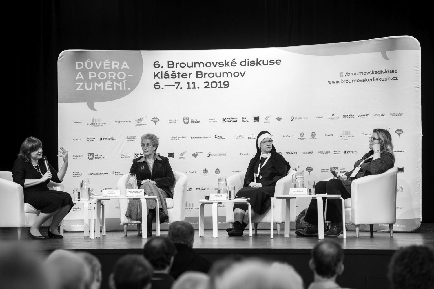 O proměnách důvěry a porozumění diskutovali na 6. Broumovských diskusích ve dnech 6. a 7. listopadu 2019 tito hosté: Eliška Wagnerová, Tomáš Petráček, Markéta Sedláčková, Vladimír Špidla, Martin Červíček, Roman Joch, Petr Fischer, Iva Pekárková, Angelika Pintířová, Věra Roubalová Kostlánová, Petr Prokop Siostrzonek a Jiří Bárta. Foto: Jaroslav Winter