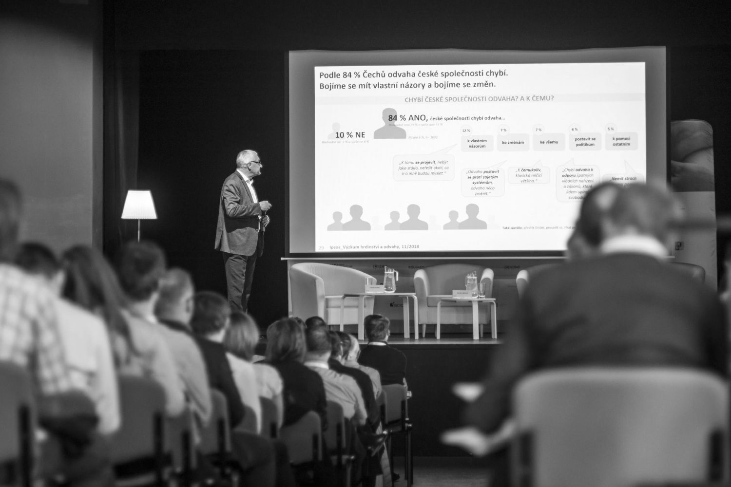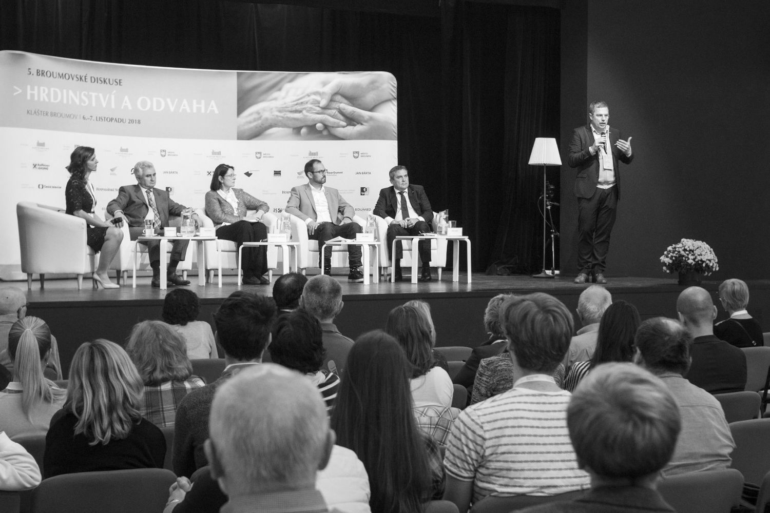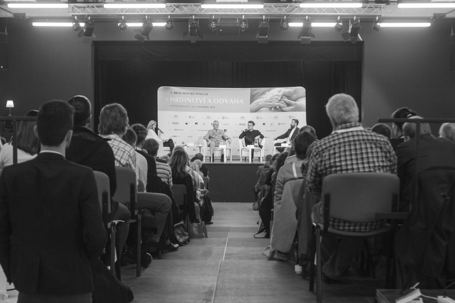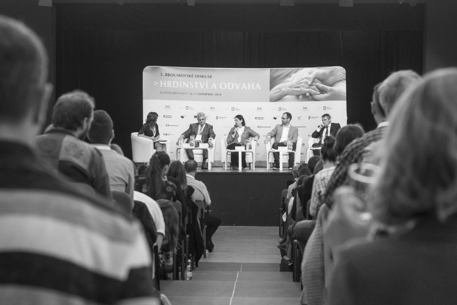 3. panelTéma Hrdinství a odvahy otevřel 5. ročník Broumovských diskusí, který zaplnil Dřevník broumovského kláštera ve dnech 6. a 7. listopadu 2018. Na konferenci vystoupili tito hosté: Daniel Kroupa, Tomáš Sedláček, Jiří Padevět, Marie Svatošová, Petr Pavel, Roman Týc, Karel „Kovy“ Kovář, Miroslava Němcová, Jan Farský, Milan Štěch a Petr Vokřál. Foto: Jan Flieger